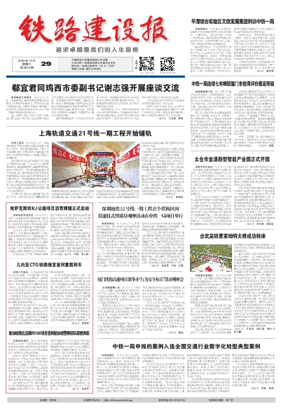 中铁一局董事会召开会议并开展调研工作 中铁一局盛装亮相广州大湾区国际轨道交通产业展览会 张林与兰州市政府常务副市长潘喆开展座谈交流 甘肃铁投集团党委书记、董事长赵四辈 深入西成高铁智能化轨枕厂调研 绍兴地铁2号线07标迎来观摩交流团 广州地铁11号线一分部三工区项目收获业主点赞表扬 新疆高速公路跨径最大转体桥成功转体 西北地区特大型铁路综合交通枢纽——西安东站普速场正线顺利开通 许昌绕城高速上跨京广铁路主桥双幅转体就位 深大城际铁路五白区间右线盾构顺利贯通